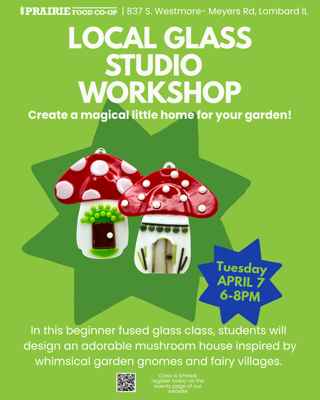 In this beginner fused glass class, students will design an adorable mushroom house inspired by whimsical garden gnomes and fairy villages.